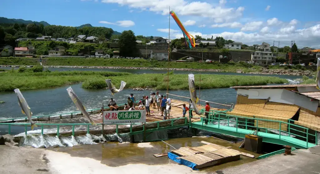 Selain Sungai Naka, Kuji juga dikenal sebagai salah satu sungai utama untuk menangkap ayu. Ada weir wisata di mana pengunjung bisa menyaksikan penangkapan ayu sekaligus menikmati sajian langsung di tepi sungai.